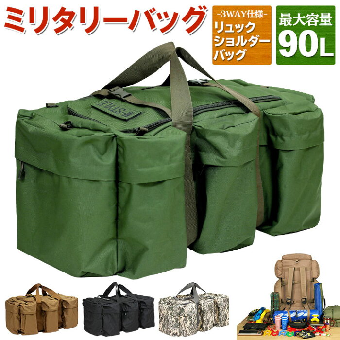 ミリタリーバッグ 3WAY ボストン リュック ショルダー 防水生地 大容量 90L